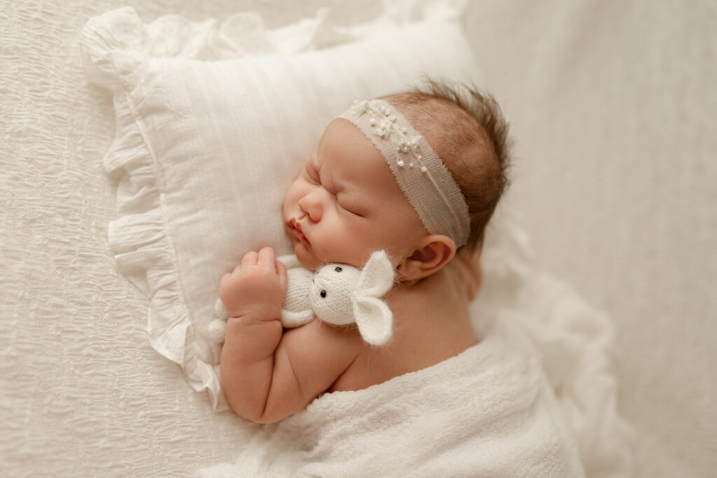This beautiful baby girl came in at just over three weeks old, and she brought so much sweetness with her. Like many newborns, she had a moment where sleep didn’t come easy—but with a little patience, gentle soothing, and a cozy environment, she peacefully drifted off. Once she did, we were able to capture soft, timeless portraits that truly highlighted her delicate features and sweet personality.